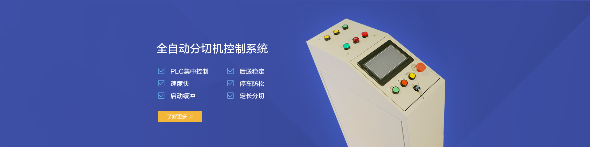 PLC集中控制,速度快啟動(dòng)緩沖,后送穩(wěn)定停車防松,定長(zhǎng)分切